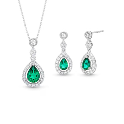 Conjunto de joyería de moda vintage, collar con colgante en forma de pera de zafiro blanco Esmeralda chapado en oro y plata rodio y pendientes colgantes