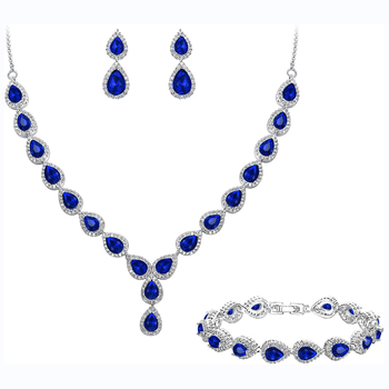 Rodio plata Azul zafiro boda joyería conjunto verde rosa negro púrpura amatista rojo rubí azul collar pendientes pulsera conjunto